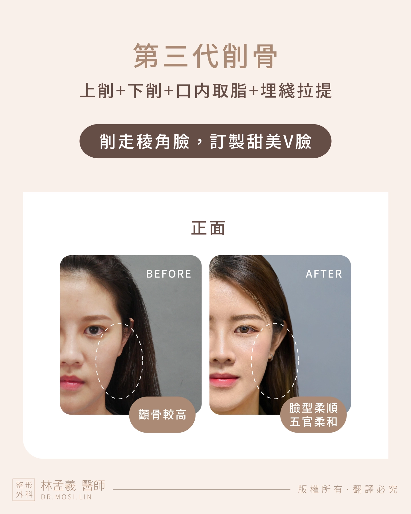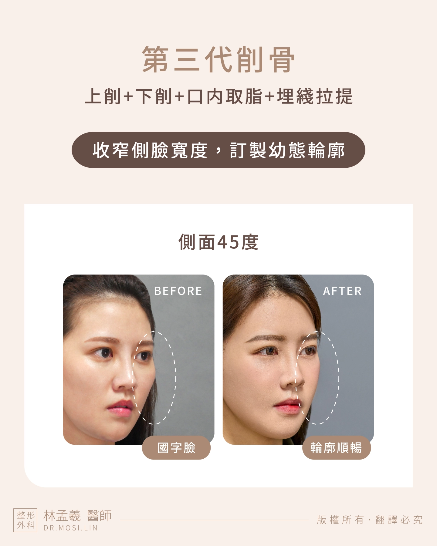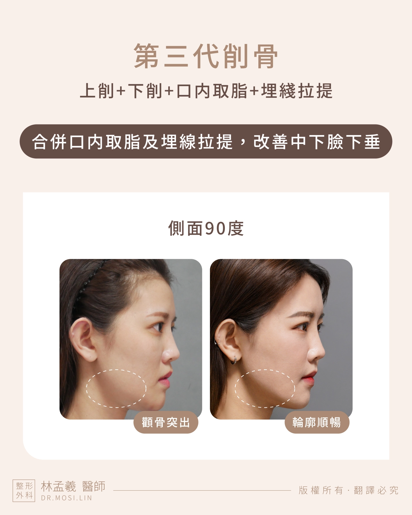 第三代削骨 包含:削顴骨(上削)/ 削下頷骨(下削) / 顴骨内推 / 下巴截骨 / 磨顴骨 /