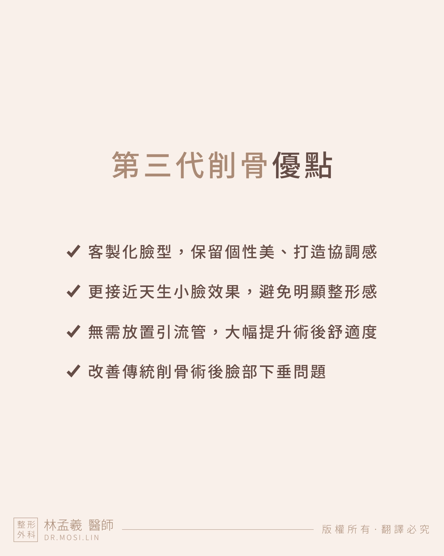 第三代削骨可選擇無需放置引流管,大幅提升術後舒適度,也是許多患者選擇的重要原因。