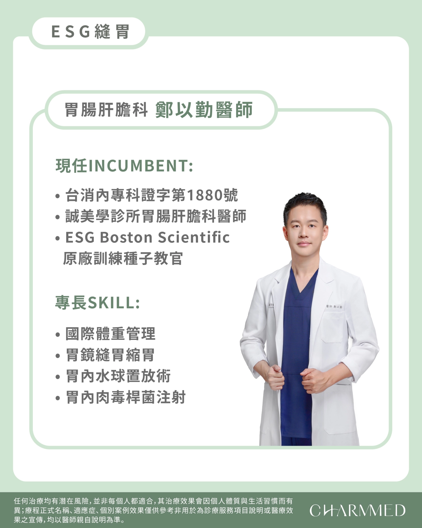 誠美學診所 鄭以勤醫師 ESG縫胃六大優點