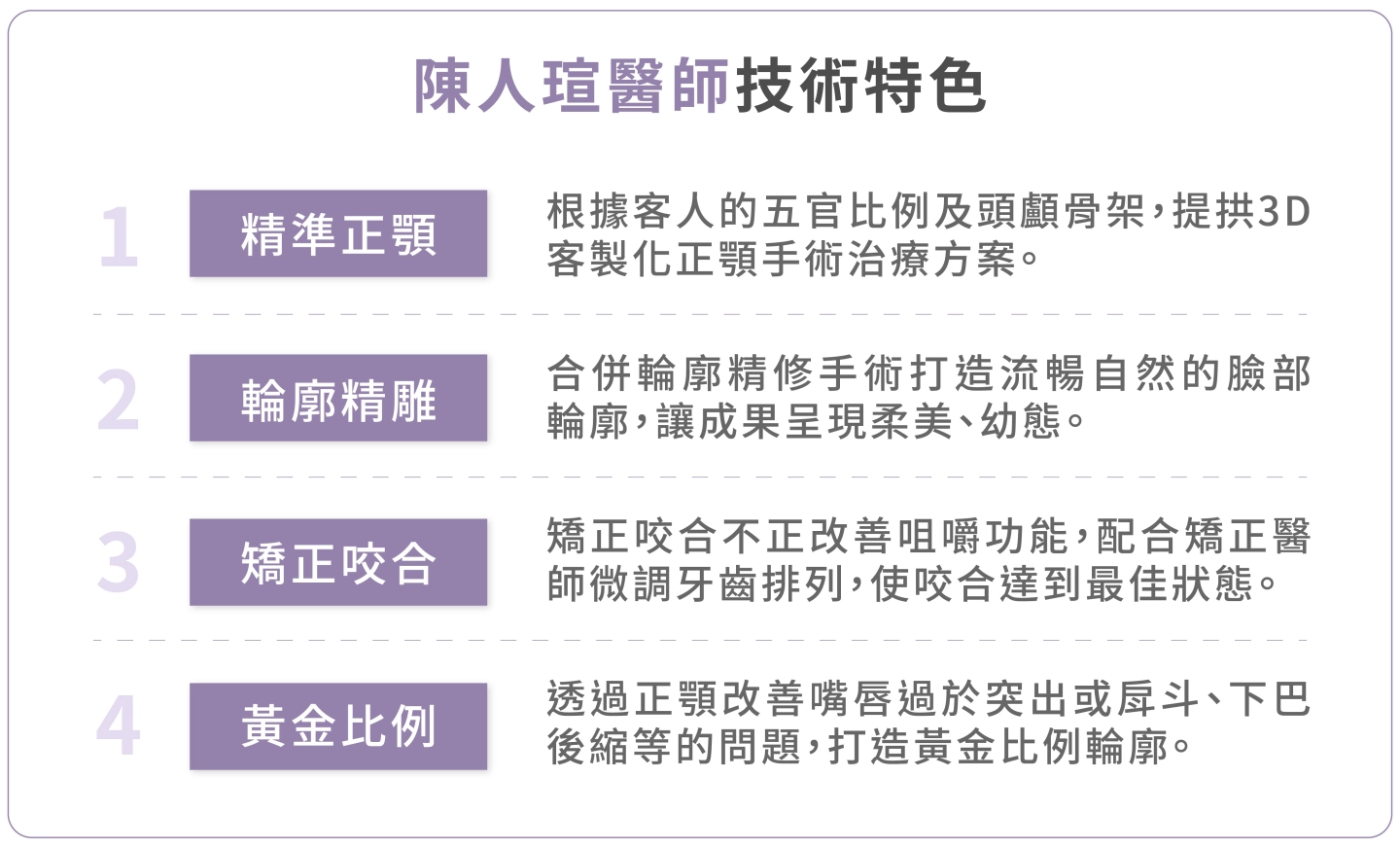 我作爲正顎、削骨手術醫師,我會比較在意客人五官與臉型的整體黃金比例怎麽樣透過正顎及削骨的方式去矯正及美化客人的臉部輪廓。