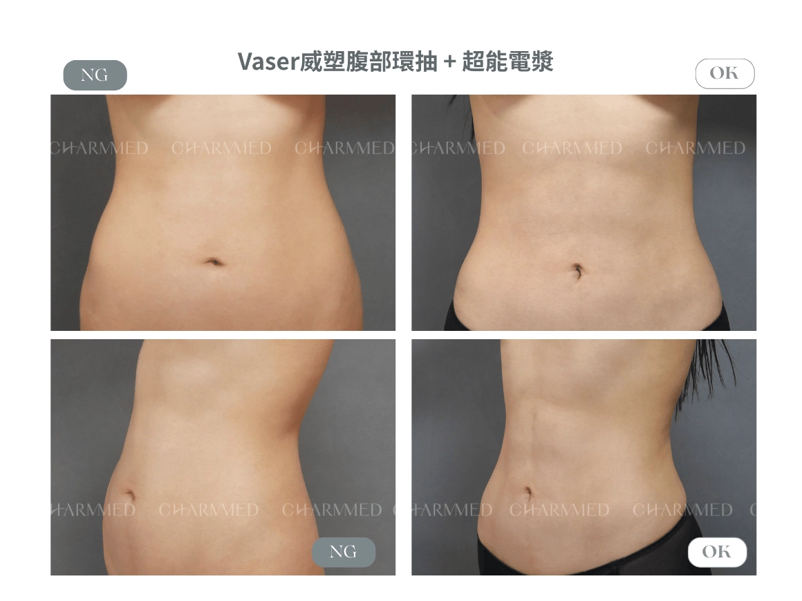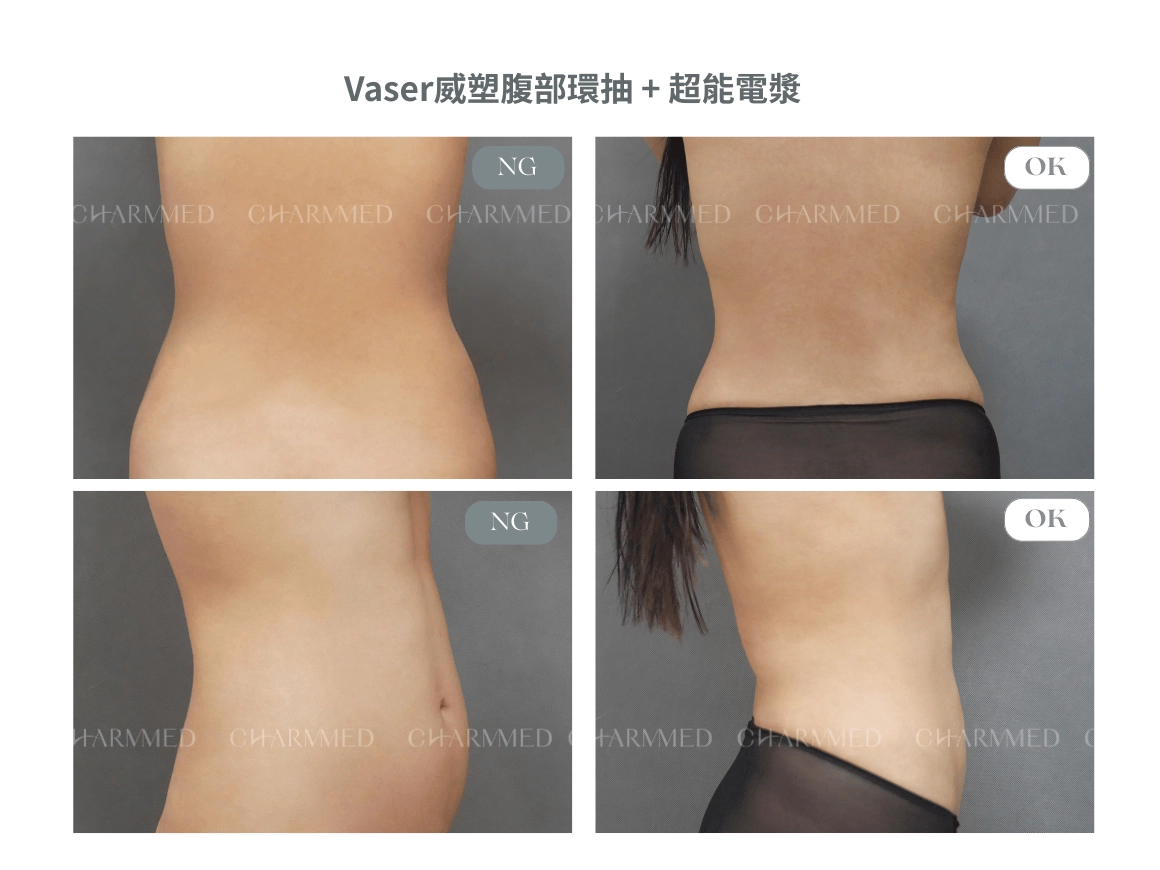 以下為院長 整形外科 林孟羲醫師Vaser威塑 腰腹部抽脂+EmbraceRF鈦特離子夾 立即效果記錄: