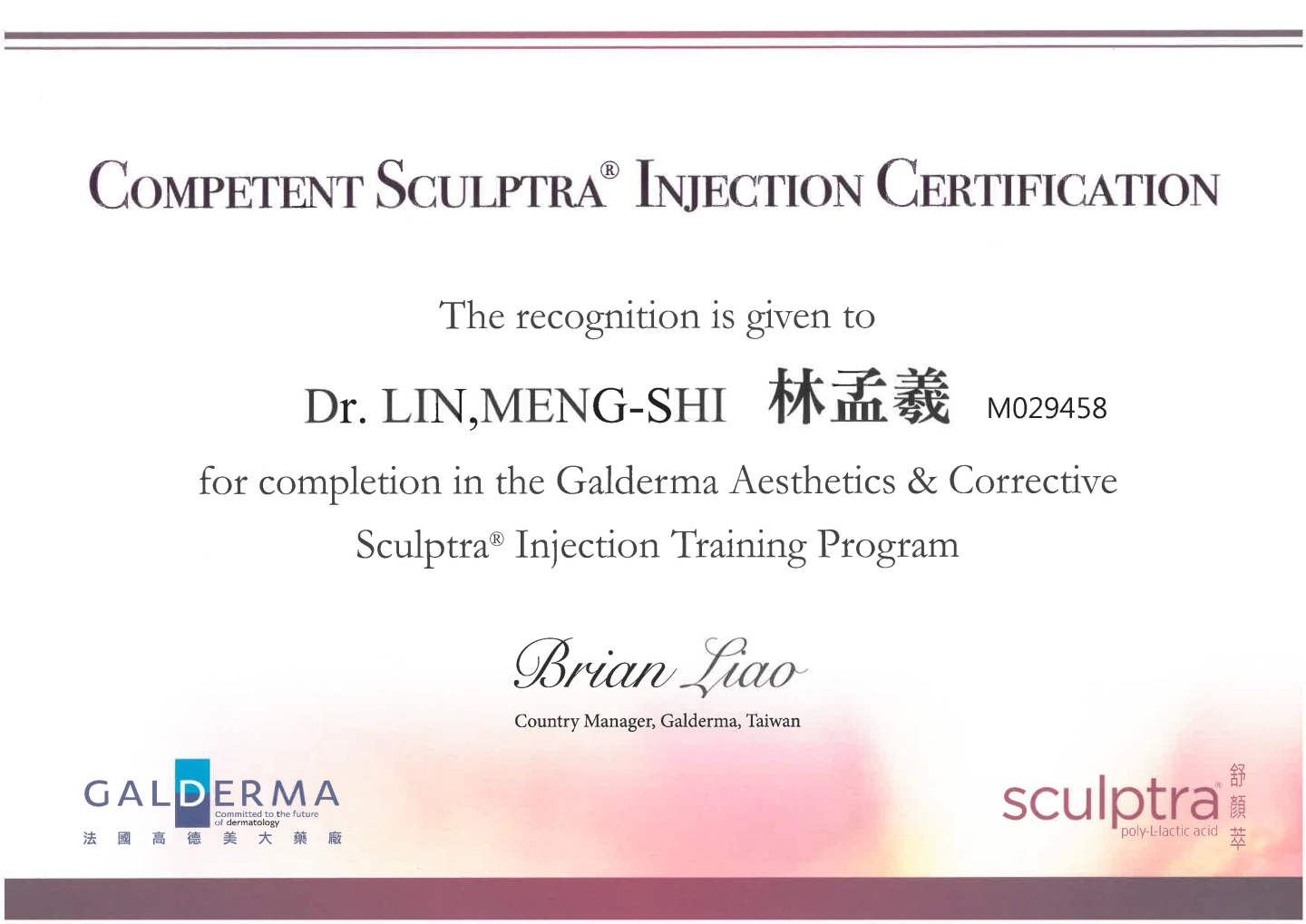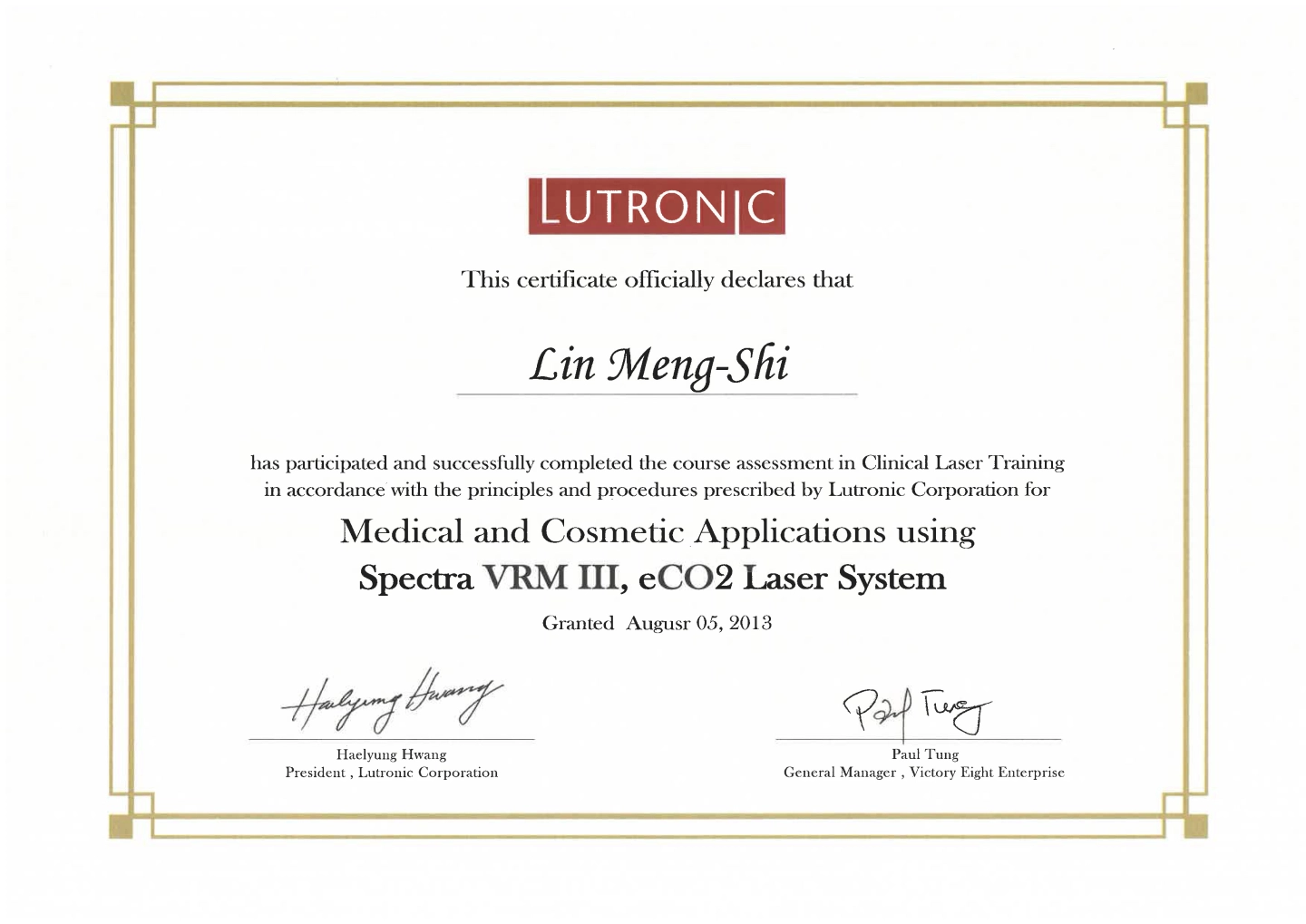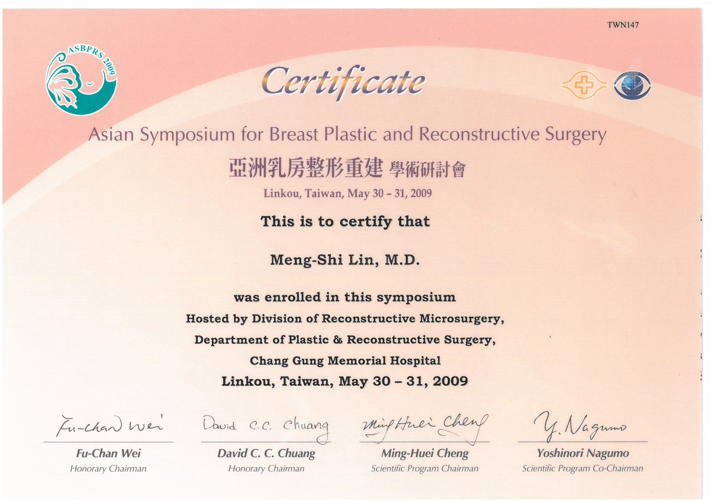 - 中華民國整形外科專科醫師(整專醫字第000375號)